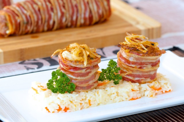 Cijeli postupak, fotografije i popis namirnica pogledajte na linku u nastavku: http://www.volim-meso.hr/mesni-sushi-rolada-slanina/