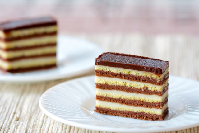 - Mađaricu slažite prvo tamno tijesto, tamna krema, zatim svijetlo tijesto i svjetlija krema. Ponavljajući postupak dok ne iskoristite sve kore.